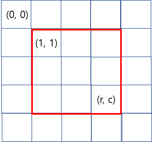 아래 그림처럼 지도를 (1, 1)부터 입력받으면 지훈이의 위치가 0행이거나 0열이거나 R+1행이거나 C+1 열인 경우 미로를 탈출한다.